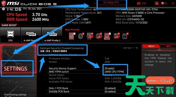 安装Win11如果电脑的硬件不支持的话,很多人就放弃安装了。硬件不支持的用户们,先别急着放弃啊,天天下载为大家带来了通过该百年BIOS让您的电脑能够绕过TMP2.0的硬件限制,成功安装Win11,还不会操作的用户一起来看看吧,希望对您有帮助。