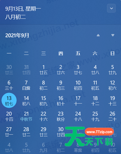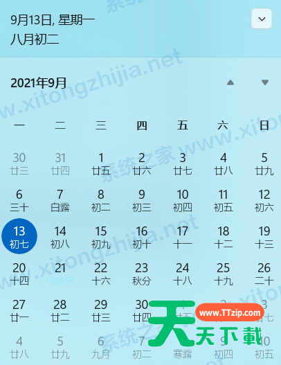 许多用户在使用电脑的时候,经常会查看Windows系统自带的日历,来了解一下当前的日期和农历时间等。但是近期有不少用户在使用的时候发现自己的电脑字体模糊,遇到这种情况我们要怎么解决呢?下面天天下载就带着大家一起看看吧! 操作方法: 桌面上单击右键-个性化 主题-选择一个浅色的主题即可。 然后再看日历,背景成浅色的了,这下是不是清楚多了 如果你只想修改那个节日或者节气文字的颜色 ,在个性主题页面左边的菜单里面选择颜色,如果没有喜欢的,可点击下面的自定义颜色,选择一种颜色比较浅的色彩即可。 这样的话,其他地方的颜色也有可能会变,比如输入文字时,那个输入法文字背景也有可能是你设置的颜色。 开始菜单图标背景也会是这个色。 @天天下载 除特别注明外,本站所有文章均为 天天下载 原创,转载请注明出处来自 https://www.ttzip.com/3541.html