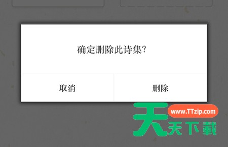 很多网友在操作古诗词典时,表示还不会删除诗集,其实很简单,这里笔者就分享了关于古诗词典删除诗集的步骤内容。有需要的小伙伴不要错过哦!古诗词典如何删除诗集?古诗词典删除诗集的步骤 1、首先打开古诗词典APP,进入软件之后通过底部菜单栏进入个人中心页面,点击我的诗集; 2、进入诗集管理页面,长按诗集向下拖动,会出现删除字样,将其拖动至删除上; 3、然后就会出现提示,点击删除即可。 以上就讲解了古诗词典删除诗集的步骤,希望有需要的小伙伴都来学习哦。@天天下载 除特别注明外,本站所有文章均为 天天下载 原创,转载请注明出处来自 https://www.ttzip.com/35416.html