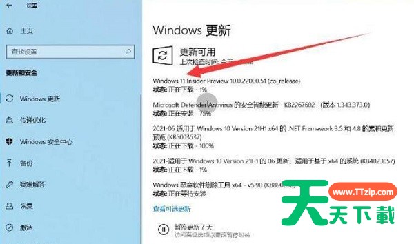 通过微软推送更新,从Windows更新升级 对于懒人来说,最简单的方案就是直接通过Windows 10的更新设置中,获得微软提供的系统推送来升级。但是要注意的是,只有符合微软硬件需求的用户,才能获得官方的系统推送,比如电脑支持TPM2.0、处理器在Ryzen 3000系列以及八代酷睿以上,当然Windows 10系统至少还得是已激活的正版。