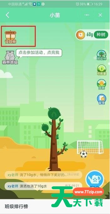 第五步可以看到钉钉班级树已经成功设置目标了,可以一起浇水,种植这棵树,如下图所示: