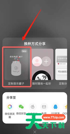 今天天天下载就带大家来共同学习一下网易云怎么删除音乐罐子?希望可以帮助到有需要的小伙伴哦,下面就是详细完整的操作步骤。网易云怎么删除音乐罐子?网易云删除音乐罐子的方法教程 1、打开网易云音乐,选择一首歌曲进入播放页,点击右上方“分享”按钮。 2、在下方弹出的窗口中点击“定制音乐罐子”。 3、这时右上角可以看到一个“全部罐子”字样,点击进入。 4、找到自己想要删除的罐子点击。 5、然后点击删除图标就可以了。 以上就是给大家分享的网易云怎么删除音乐罐子的全部教程了,更多实用教程敬请关注天天下载。@天天下载 除特别注明外,本站所有文章均为 天天下载 原创,转载请注明出处来自 https://www.ttzip.com/36416.html