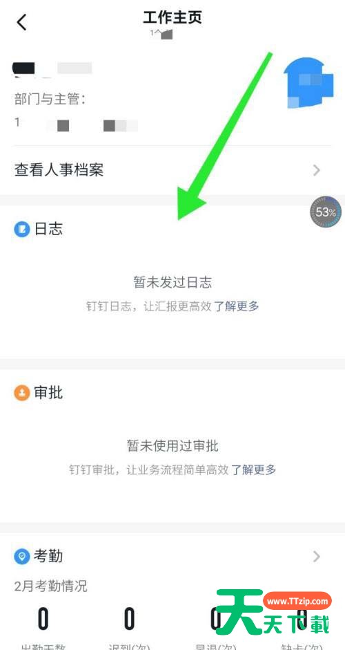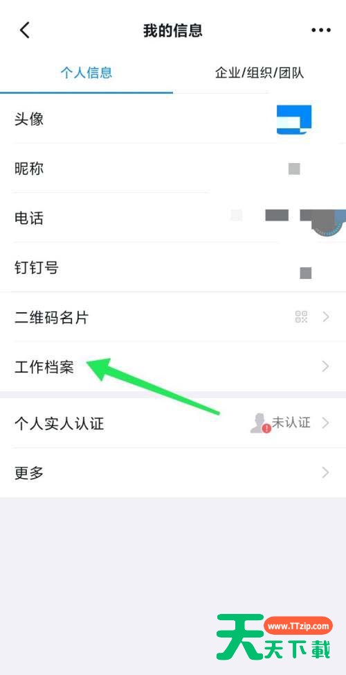 钉钉怎样查看个人工作档案?还有不了解的小伙伴,下面跟随天天下载一起看一下钉钉查看个人工作档案教程吧,感兴趣的小伙伴赶紧过来看看吧!钉钉怎样查看个人工作档案?钉钉查看个人工作档案教程 1、登录钉钉APP,在我的页面,点击上方个人资料区域。 2、在我的信息页面中点击工作档案。 3、进入工作主页,查看自己的工作情况。 以上就是钉钉如何查看个人工作档案的详细内容,相信会有帮助哦。@天天下载 除特别注明外,本站所有文章均为 天天下载 原创,转载请注明出处来自 https://www.ttzip.com/36604.html