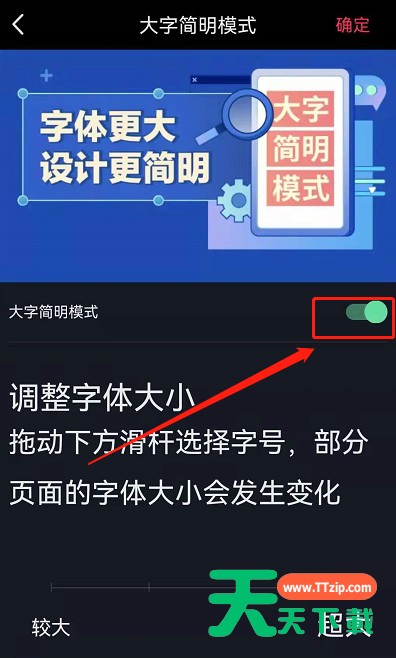 抖音如何取消大字简明模式呢?今天天天下载就带大家来共同学习抖音取消大字简明模式方法,希望可以帮助到有需要的小伙伴哦,下面就是详细完整的操作步骤。抖音如何取消大字简明模式?抖音取消大字简明模式方法 1、进入抖音后选择我的页面,点击上方【三】横线。 2、然后在右侧出现选项中找到设置选项。 3、进入设置后找到大字简明模式。 4、点击一下右侧绿色按钮。 5、最后点击上方确定,软件会自动进行重启,重启后大家的字号就恢复到了默认大小。 以上这里为各位分享了抖音取消大字简明模式方法。有需要的小伙伴赶快来看看本篇文章吧!@天天下载 除特别注明外,本站所有文章均为 天天下载 原创,转载请注明出处来自 https://www.ttzip.com/36680.html