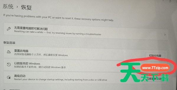 习惯了电脑下方任务栏不合并窗口的用户肯定不喜欢Win11的默认设置——任务栏的窗口合并,这让用户的使用变得麻烦。那想要取消任务栏合并窗口,要如何设置呢?接下来我们就一起看看详细的教程吧。 Win11任务栏怎么设置不合并窗口 答:无法设置 1、我们可以进入设置,找到任务栏设置,发现并没有相关的设置。 2、对此,有网友咨询了微软客服,表示目前Win11确实无法取消合并窗口。 3、因此大家如果实在使用起来麻烦,那就只能回退win10系统了。 4、进入系统设置,在其中选择“恢复”,然后点击恢复选项下的“返回”就可以了。 @天天下载 除特别注明外,本站所有文章均为 天天下载 原创,转载请注明出处来自 https://www.ttzip.com/3743.html
