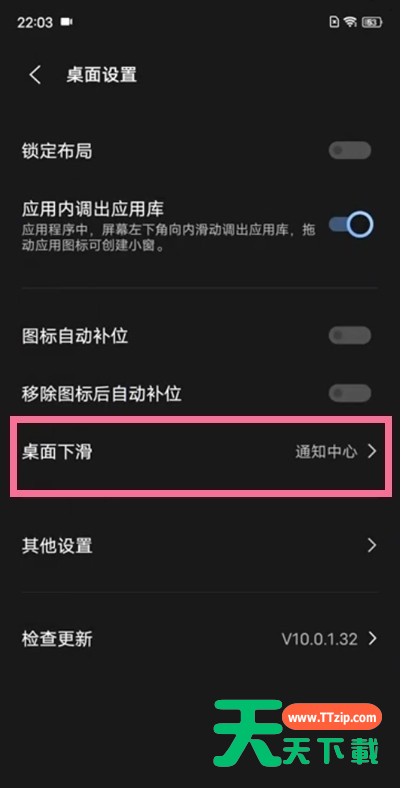 如今许多手机都支持全局搜索,vivo手机也不例外,那么在vivo手机如何关闭通知中心呢?本章节就主要介绍了vivo手机关闭通知中心步骤,还不了解的小伙伴就跟着天天下载学习一下吧,希望对你们有所帮助。vivo手机如何关闭通知中心?vivo手机关闭通知中心步骤 1、打开手机设置,点击【桌面、锁屏与壁纸】选项。 2、点击【桌面设置】选项。 3、点击【桌面下滑】选项。 4、勾选【通知中心】或者【无】即可成功关闭。 以上这里为各位分享了vivo手机关闭通知中心步骤。有需要的小伙伴赶快来看看本篇文章吧!@天天下载 除特别注明外,本站所有文章均为 天天下载 原创,转载请注明出处来自 https://www.ttzip.com/37469.html