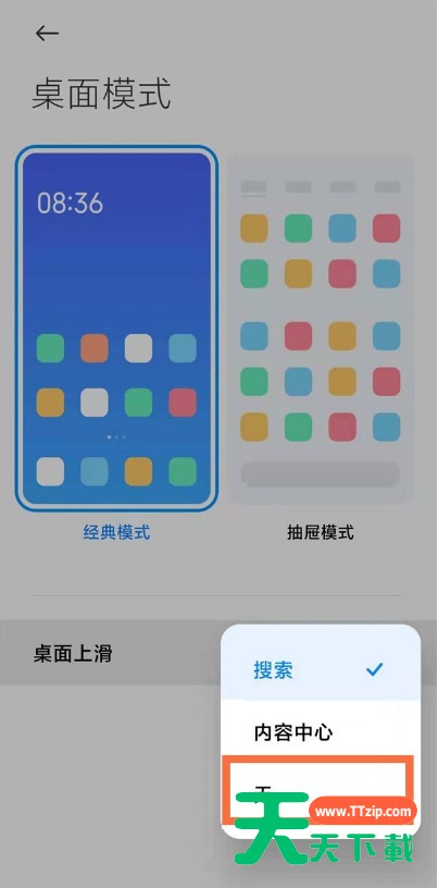 小伙伴们你们知道小米手机如何设置桌面上滑呢?今天天天下载很乐意与大家分享小米手机桌面上滑设置步骤,感兴趣的可以来了解了解哦。小米手机如何设置桌面上滑?小米手机桌面上滑设置步骤 1、在手机设置菜单中点击【桌面】。 2、点击【桌面模式】选项。 3、点击【桌面上滑】。 4、勾选【无】即可。 以上这里为各位分享了小米手机桌面上滑设置步骤。有需要的小伙伴赶快来看看本篇文章吧!@天天下载 除特别注明外,本站所有文章均为 天天下载 原创,转载请注明出处来自 https://www.ttzip.com/38254.html