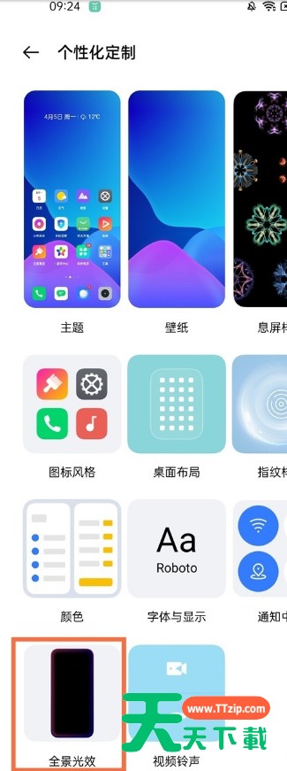 真我V13有配置来电光效吗?亲们想知道真我V13怎样设置来电光效吗?下面就是天天下载整理真我V13设置来电光效步骤,赶紧来看看吧,希望能帮助到大家哦!真我V13怎样设置来电光效?真我V13设置来电光效步骤 1、打开手机设置,点击【个性化定制】。 2、点击【全景光效】。 3、点击【息屏通知光效】和【来电光效】可自主选择光效样式。 以上这里为各位分享了真我V13设置来电光效步骤。有需要的小伙伴赶快来看看本篇文章吧!@天天下载 除特别注明外,本站所有文章均为 天天下载 原创,转载请注明出处来自 https://www.ttzip.com/38658.html