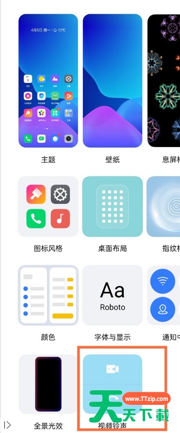 小伙伴们你们知道真我V13如何设置视频响铃呢?今天天天下载很乐意与大家分享真我V13设置视频响铃方法,感兴趣的可以来了解了解哦。真我V13如何设置视频响铃?真我V13设置视频响铃方法 1、打开手机设置,点击【个性化定制】。 2、点击【视频铃声】。 3、选择要设置的视频铃声,点击下载应用即可。 以上这里为各位分享了真我V13设置视频响铃方法。有需要的小伙伴赶快来看看本篇文章吧!@天天下载 除特别注明外,本站所有文章均为 天天下载 原创,转载请注明出处来自 https://www.ttzip.com/38793.html