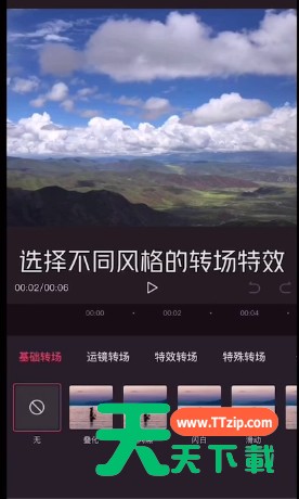 剪映添加转场在哪里?很多小伙伴还不知道怎么弄,下面天天下载为大家带来了剪映添加转场教程,赶快来看看吧。剪映添加转场在哪里 剪映添加转场教程 1、进入视频编辑页面后,导入至少两段素材(素材之间可以添加转场效果) 2、点击中间这个白色的按钮,就会出现不同风格的转场特效。 3、选择自己想要的特效,调整每个转场的时长,导出视频即可。 以上就是剪映添加转场教程,更多手机教程尽在天天下载!@天天下载 除特别注明外,本站所有文章均为 天天下载 原创,转载请注明出处来自 https://www.ttzip.com/40108.html