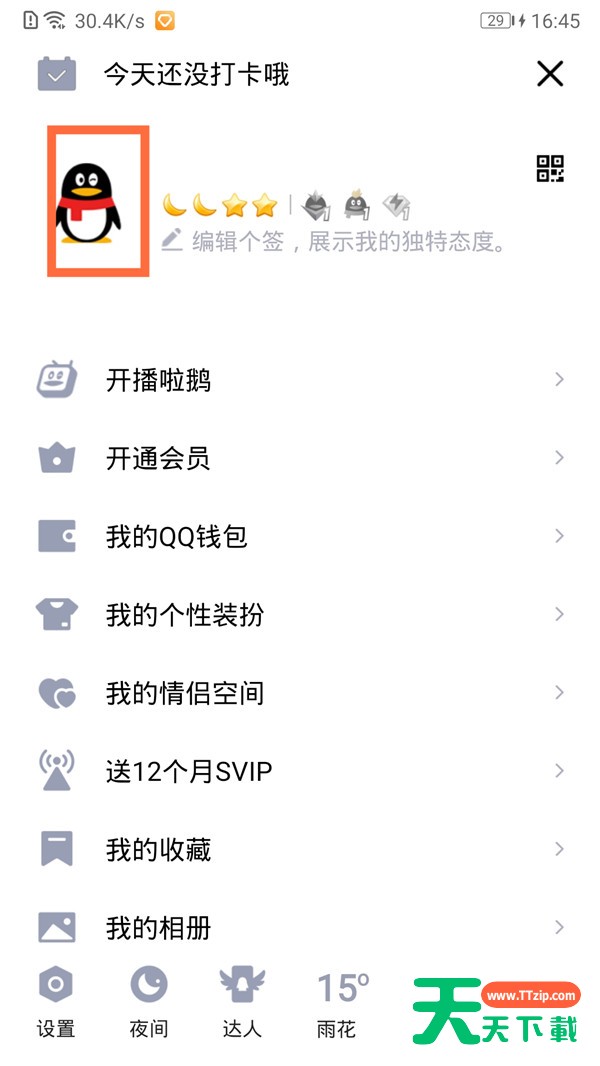 有很多人不了解QQ怎么隐藏年龄和生日,那么今天天天下载就在这里给大家分享qq隐藏年龄和生日教程,希望可以给你们带来帮助。QQ怎么隐藏年龄和生日 qq隐藏年龄和生日教程 1、打开QQ,点击左上角的个人头像,继续点击头像。 2、点击右上角的【更多】,选择【资料卡设置】。 3、点击【资料展示设置】。 4、将年龄和生日栏设置为【所有人不可见】。 以上就是给大家分享的全部教程,更多手机教程尽在天天下载!@天天下载 除特别注明外,本站所有文章均为 天天下载 原创,转载请注明出处来自 https://www.ttzip.com/40653.html