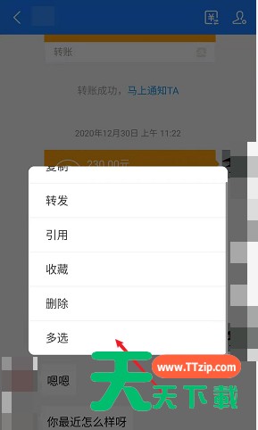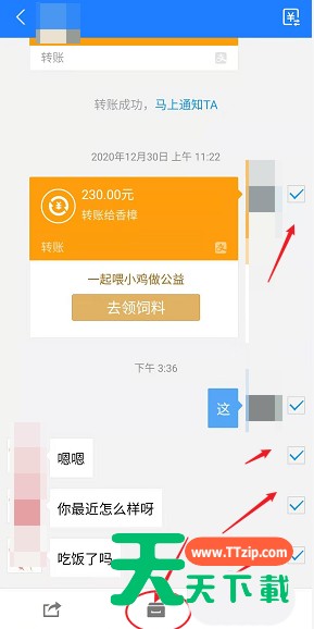 支付宝聊天记录如何迁移?有些用户在换新手机后,想要把支付宝里的聊天记录迁移,该怎么做呢?下面我们就来看看详细的教程。支付宝聊天记录如何迁移 支付宝备份聊天记录方法介绍 1、打开“支付宝”app,点击“消息”,找到要保留的小伙伴聊天记录。 2、如图,我们要在新手机上保留这几条聊天记录。 3、长按聊天消息,选择“多选”。 4、勾选我们要保留的聊天内容,点击“收藏”。 5、这时会弹出一个对话框,提示我们“表情、名片、记录消息或其他特殊消息不能收藏”,点击“确定”。 6、然后会再次跳出一个对话框,告知我们“收藏的内容将会上传保存,在其他设备上登录支付宝也可以查看”,这就达到我们的目的了。 7、这时我们换另外一个手机,登录支付宝账户,点击“我的”,再点击“头像”,选择聊天收藏。 8、这时我们要保留的聊天记录就转移成功了。 以上就是支付宝备份聊天记录方法介绍,更多手机教程尽在天天下载!@天天下载 除特别注明外,本站所有文章均为 天天下载 原创,转载请注明出处来自 https://www.ttzip.com/41319.html
