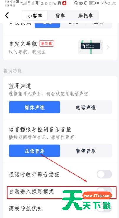 高德地图自动进入探路模式,该怎么设置呢?下面天天下载就为大家带来高德地图探路模式的具体操作方法,想知道的话就来看看吧。 高德的探路模式怎么使用? 高德地图探路模式的使用方法 1、在手机上打开高德地图。 2、在首页点击右下角“我的”。 3、个人主页点击右上角图标。 4、继续点击“导航设置”。 5、在此页面可以看到“自动进入探路模式”。 6、点击开启即可完成操作。 以上就是关于高德地图探路模式的全部内容了,希望对大家有所帮助。 @天天下载 除特别注明外,本站所有文章均为 天天下载 原创,转载请注明出处来自 https://www.ttzip.com/41974.html