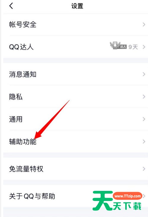 QQ截屏快捷分享功能在哪开启?很多用户还不知道怎么设置,下面天天下载给大家带来QQ设置截屏后展示编辑菜单方法,一起来看看吧。QQ截屏快捷分享功能在哪开启 QQ设置截屏后展示编辑菜单方法 1、打开手机,找到QQ软件。 2、打开QQ,点击上方头像或左滑页面。 3、在此界面,点击“设置”图标。 4、在此界面,点击“辅助功能”图标。 5、在此界面,点击“截屏快捷分享"右侧按钮,即可设置QQ截屏快捷分享。 以上就是QQ设置截屏后展示编辑菜单方法,更多手机教程尽在天天下载!@天天下载 除特别注明外,本站所有文章均为 天天下载 原创,转载请注明出处来自 https://www.ttzip.com/42459.html