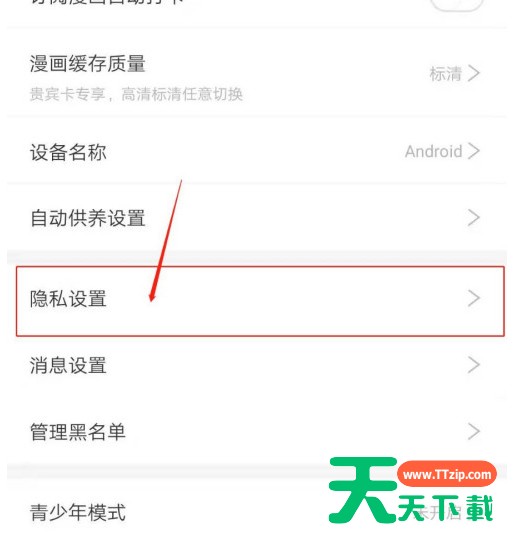 漫画台怎么隐藏记录?很多小伙伴不知道怎么设置,下面和大家分享一下解决这个问题的方法,希望可以帮助到有需要的小伙伴。 漫画台怎么隐藏记录 漫画台观看记录隐藏方法1、打开漫画台APP。见下图 2、点击右下角我的,点击打开设置。见下图。 3、在设置页面,点击隐私设置。见下图 4、在隐私设置页面,点开对他人隐藏记录按钮。见下图 以上就是漫画台观看记录隐藏方法,一起来看看吧。@天天下载 除特别注明外,本站所有文章均为 天天下载 原创,转载请注明出处来自 https://www.ttzip.com/42841.html