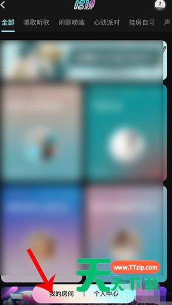 2、打开唱聊后,点击我的房间进入。