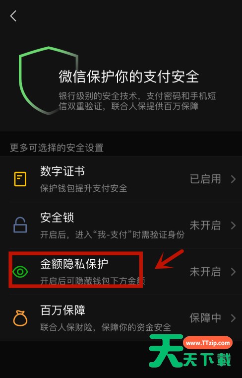 微信怎么隐藏余额?很多人微信钱包里都有不少余额,那么微信余额怎么隐藏金额?下面天天下载教大家方法,一起来学习一下吧。 微信怎么隐藏余额 微信不显示余额方法1、打开微信,点击切换到【我】,然后选择【支付】。 2、点击进入【钱包】。 3、选择点击【安全保障】。 4、点击进入【金额隐私保护】。 5、打开滑动开关即可。 6、如下图所示,钱包的余额已经隐藏了。 以上就是微信不显示余额方法,更多手机教程尽在天天下载!@天天下载 除特别注明外,本站所有文章均为 天天下载 原创,转载请注明出处来自 https://www.ttzip.com/42879.html