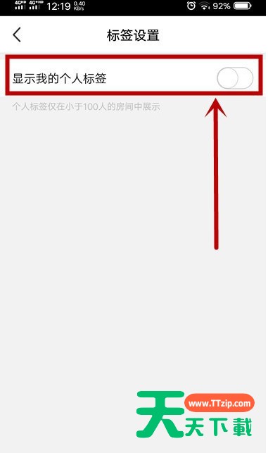腾讯now直播个性标签怎么关闭?很多小伙伴不知道如何设置,下面天天下载介绍一下腾讯NOW直播个性标签关闭方法,一起来看看吧。 腾讯now直播个性标签怎么关闭 腾讯NOW直播个性标签关闭方法 1、点击打开并登录手机上的“腾讯now直播”软件; 2、点击腾讯now直播首页左上角的“头像”; 3、点击“我”页面上方的“头像”; 4、点击页面中的“编辑”; 5、点击“标签设置”; 6、点击“显示我的个人标签”右侧的按钮; 7、“显示我的个人标签”右侧的按钮由绿色变为白色,关闭成功。 以上就是腾讯now直播怎么关闭个性标签的全部内容了,更多手机教程尽在天天下载!@天天下载 除特别注明外,本站所有文章均为 天天下载 原创,转载请注明出处来自 https://www.ttzip.com/43033.html