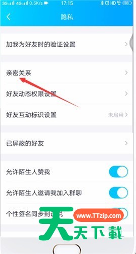 有些用户或许不知道QQ绑定闺蜜关系的操作,那么今天天天下载就讲解QQ绑定闺蜜关系的操作步骤哦,希望能够帮助到大家。 QQ绑定闺蜜关系的操作教程 打开手机QQ,点击左上角的头像, 点击设置, 点击隐私, 点击亲密关系, 在闺蜜关系下,点击邀请, 选择你要绑定成闺蜜关系的好友,点击邀请,等待对方同意即可,最多可以和三位好友绑定成闺蜜关系。 以上就讲解了QQ绑定闺蜜关系的操作内容,希望有需要的小伙伴都来学习哦。 @天天下载 除特别注明外,本站所有文章均为 天天下载 原创,转载请注明出处来自 https://www.ttzip.com/43959.html