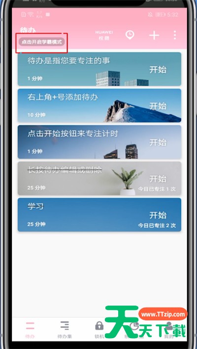 最近很多网友表示自己不清楚番茄todo怎么开启学霸模式,而本篇文章就来给大家讲解番茄todo开启学霸模式的具体方法,大家都来一起学习吧。番茄todo开启学霸模式的具体方法 1、首先我们打开番茄 2、点击待办下方的开始学霸模式 3、勾选学霸模式即可打开 以上就是天天下载为大家带来的番茄todo怎么开启学霸模式的操作方法,更多手机教程尽在天天下载!@天天下载 除特别注明外,本站所有文章均为 天天下载 原创,转载请注明出处来自 https://www.ttzip.com/45334.html