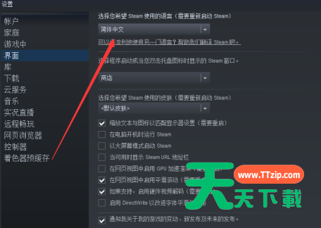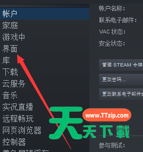 很多游戏玩家都会使用steam软件,那么你们知道steam如何设置为英文吗?下文就为大伙带来了将steam设置为英文的方法,让我们一同来下文学习学习吧。 steam如何设置为英文?将steam设置为英文的方法 打开并登录steam 点击【steam】再点击【设置】 点击【界面】 点击【简体中文】 在下拉列表中选择【English】 点击【确定】 重启steam就设置好了,效果如下 以上就是将Steam设置为英文的方法的全部内容,更多精彩教程请关注天天下载! @天天下载 除特别注明外,本站所有文章均为 天天下载 原创,转载请注明出处来自 https://www.ttzip.com/4556.html