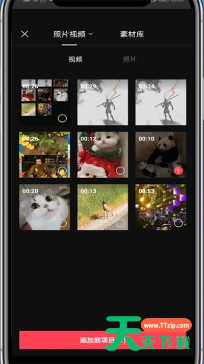 3、选择一段视频点击添加到项目