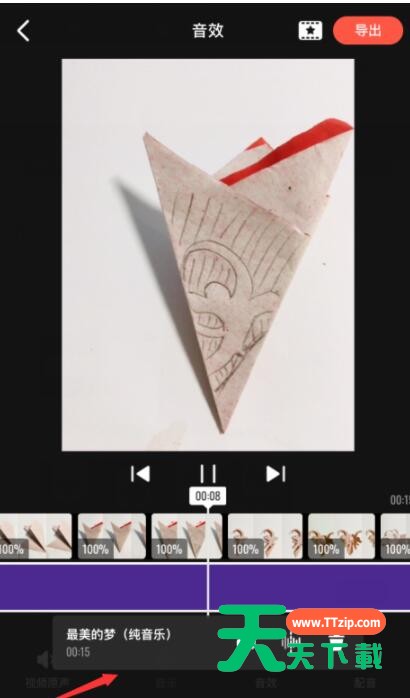 此时音乐已添加到视频,需要将添加的音乐拉开到整个视频即可。