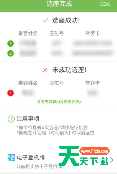 6.进入“选座完成”页面,可以看到选座是否成功: