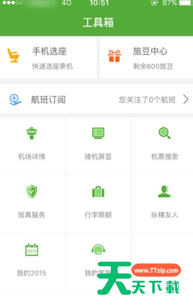 1.进入“航旅纵横”主页面,点击下方【工具箱】