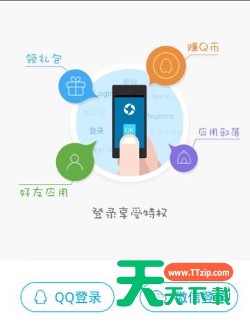 应用宝支持使用QQ号码 + 微信账号进行登录。