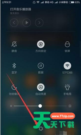 5、接着向下拉动屏幕,在打开的快捷图标中点击下方的“设置”按钮;