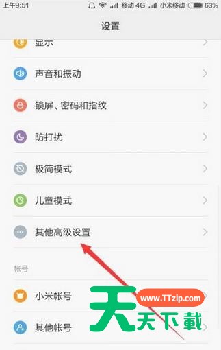 6、在打开的设置主界面中,点击“其它高级设置”菜单项;