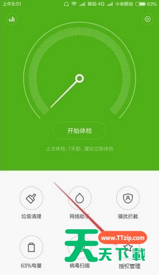 2、在打开的安全中心中,点击右下角的“授权管理”图标;