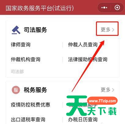 4、进入国家政务服务平台页面,拖动页面找到“司法服务”。