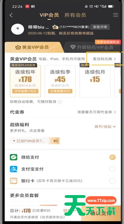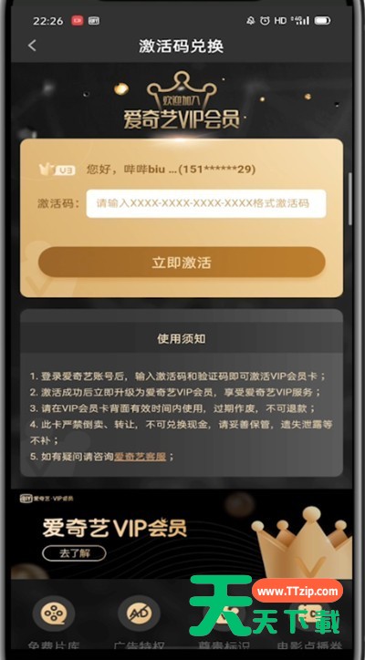 很多用户在使用爱奇艺的时候,不是很熟悉其中周卡兑换在哪里?本期为你们带来的教程就描述了爱奇艺打开周卡兑换的步骤教程。 爱奇艺打开周卡兑换的步骤教程 1、首先我们打开爱奇艺 2、点击右下角我的 3、点击我的vip会员 4、找到立即续费点击进入 5、找到激活码兑换点击进入 6、输入激活码即可兑换 以上就是天天下载为大家带来的爱奇艺周卡兑换在哪里的操作方法,更多手机教程尽在天天下载! @天天下载 除特别注明外,本站所有文章均为 天天下载 原创,转载请注明出处来自 https://www.ttzip.com/47399.html
