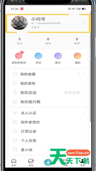 3、点击个人头像进入主页