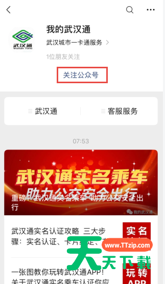 2、关注我的武汉通公众号;