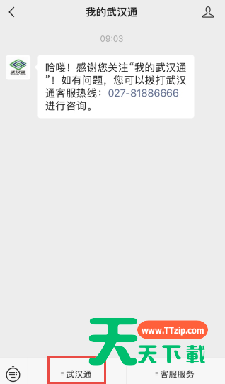 3、点击底部菜单武汉通;