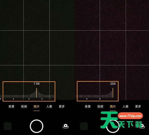 3、如果感觉5倍变焦不够,也可以长按1X处,然后滑动切换变焦倍数,最高可达20倍数码变焦。