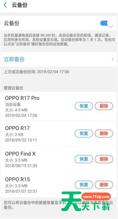 3.点击打开备份选项,选择云备份进入,找到对应需要恢复的备份记录,点击恢复即可。