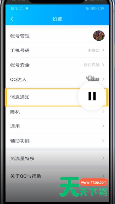 小伙伴们你们知道在QQ消息震动怎么关呢?今天天天下载很乐意与大家分享在QQ关消息震动的方法教程,感兴趣的可以来了解了解哦。 QQ关消息震动的方法教程 1、首先我们打开QQ 2、点击左上角的个人头像 3、点击设置 4、点击消息通知 5、点击消息通知设置 6、取消勾选振动即可 以上就是天天下载为大家带来的QQ消息震动怎么关的操作方法,更多手机教程尽在天天下载! @天天下载 除特别注明外,本站所有文章均为 天天下载 原创,转载请注明出处来自 https://www.ttzip.com/48161.html