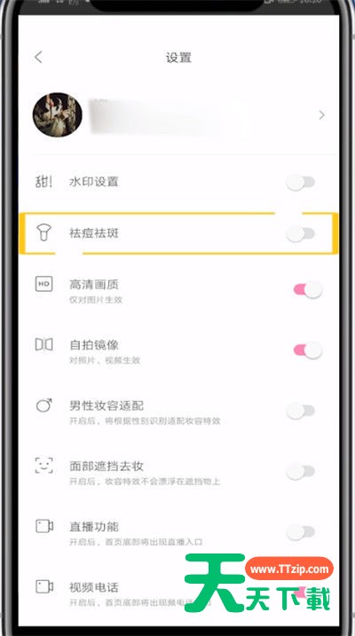 一甜相机怎么去痘的操作常常困扰着不少用户,下面笔者就分享了一甜相机去痘的简单教程作步骤,不懂的小伙伴一起来看看吧。 一甜相机去痘的简单教程 1、首先我们打开一甜相机 2、点击左上角的三个点 3、点击设置 4、找到祛痘祛斑,勾选即可 以上就是天天下载为大家带来的一甜相机怎么去痘的操作方法,更多手机教程尽在天天下载! @天天下载 除特别注明外,本站所有文章均为 天天下载 原创,转载请注明出处来自 https://www.ttzip.com/48170.html