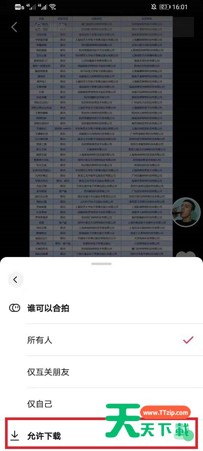 亲们想知道抖音怎么关闭下载视频功能吗?下面就是天天下载整理的抖音关闭下载视频功能的方法教程,赶紧来看看吧,希望能帮助到大家哦! 抖音关闭下载视频功能的方法教程 1.首先需要进入到个人主页,打开抖音点击【我的】进入到个人主页,找到自己的视频; 2.在自己的视频播放界面中,点击右下角的【权限设置】进入到其中; 3.在弹出的选项中点击下方的【合拍与下载权限】然后会打开界面; 4.然后在界面中最下方,关闭按钮就可以完成设置,关闭下载功能。 以上就是天天下载为大家带来的抖音怎么关闭下载视频功能的操作方法,更多手机教程尽在天天下载! @天天下载 除特别注明外,本站所有文章均为 天天下载 原创,转载请注明出处来自 https://www.ttzip.com/48220.html