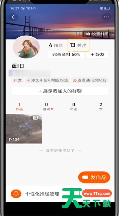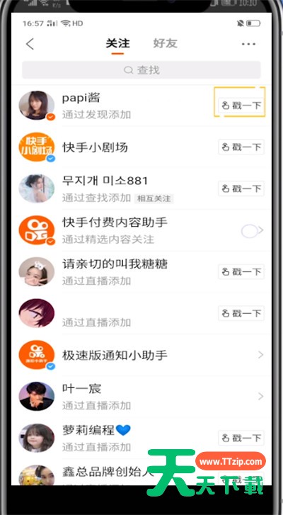 估计有的用户还不了解快手怎么戳一下别人的操作,下文天天下载就分享快手戳一下别人的方法教程,希望对你们有所帮助哦。 快手戳一下别人的方法教程 1、首先我们打开快手 2、点击左上角的三条杠 3、点击个人头像 4、点击关注 5、找到你要戳一下的好友,点击戳一下即可 以上就是天天下载为大家带来的快手怎么戳一下别人的操作方法,更多手机教程尽在天天下载! @天天下载 除特别注明外,本站所有文章均为 天天下载 原创,转载请注明出处来自 https://www.ttzip.com/48306.html