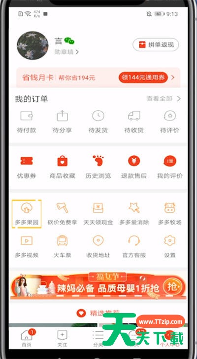 估计有的用户还不了解拼多多怎么种树领水果的操作,下文天天下载就分享拼多多中种树领水果的步骤教程,希望对你们有所帮助哦。 拼多多中种树领水果的步骤教程 1、首先我们打开拼多多 2、点击右下角的个人中心 3、点击多多果园 4、点击浇水,等待小树结果时即可领取水果 以上就是天天下载为大家带来的拼多多怎么种树领水果的操作方法,更多手机教程尽在天天下载! @天天下载 除特别注明外,本站所有文章均为 天天下载 原创,转载请注明出处来自 https://www.ttzip.com/48307.html