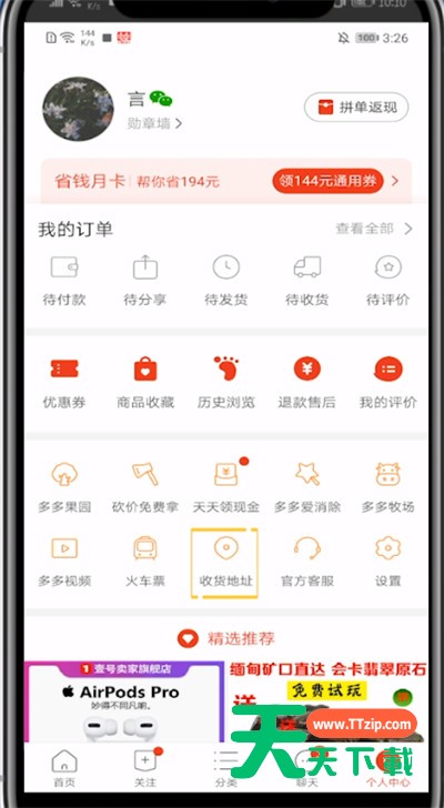 你们知道拼多多修改地址在哪里吗?怎么样开启这项功能呢?对此感兴趣的用户可以随天天下载去下文看看拼多多使用修改地址的方法步骤。 拼多多使用修改地址的方法步骤 1、首先我们打开拼多多 2、点击右下角的个人中心 3、点击收货地址 4、找到你要修改的地址,点击地址下方的编辑 5、编辑好新的收货地址后点击保存即可修改 以上就是天天下载为大家带来的拼多多修改地址在哪里的操作方法,更多手机教程尽在天天下载! @天天下载 除特别注明外,本站所有文章均为 天天下载 原创,转载请注明出处来自 https://www.ttzip.com/48353.html