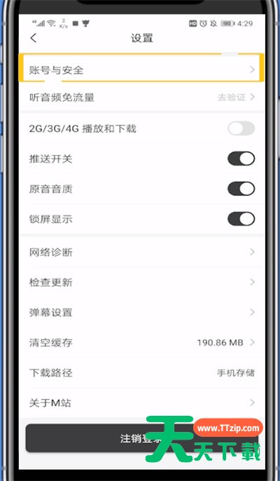 4、点击账号与安全