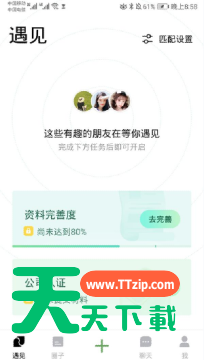 3.填完资料后,就能进入遇见的界面了,然后点击上方的【好友】按钮。