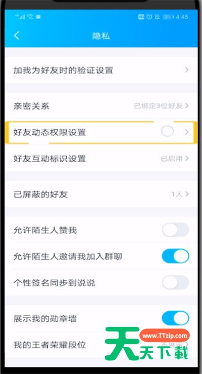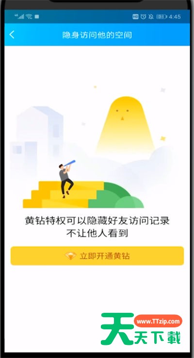 亲们想知道QQ空间可以隐身看别人空间的操作吗?下面就是天天下载整理的QQ空间可以隐身看别人空间的详细介绍,赶紧来看看吧,希望能帮助到大家哦! QQ空间可以隐身看别人空间的详细介绍 1、首先我们打开qq 2、点击左上角的个人头像 3、点击左下角的设置 4、点击隐私 5、点击好友动态权限设置 6、点击隐身访问他的空间 7、开通黄钻后即可将他添加至隐身访问空间列表 以上就是天天下载为大家带来的QQ空间可以隐身看别人空间吗的操作方法, 更多手机教程尽在天天下载! @天天下载 除特别注明外,本站所有文章均为 天天下载 原创,转载请注明出处来自 https://www.ttzip.com/49473.html