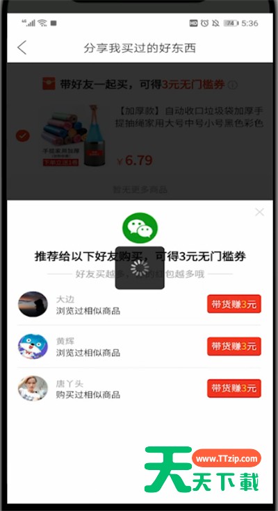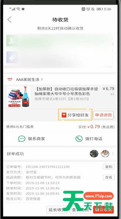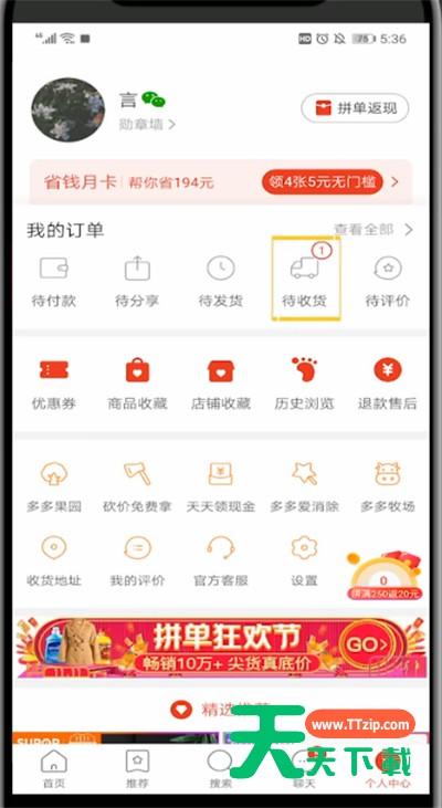 拼多多订单怎么分享到微信?想必有的网友还不太了解的,为此,今日天天下载带来的这篇文章就为大伙分享了拼多多订单中分享到微信的详细步骤,一起来看看吧。 拼多多订单中分享到微信的详细步骤 1、首先我们打开拼多多 2、右下角的个人中心 3、点击待收货 4、点击你要分享的订单,点击分享给好友 5、再次点击分享给好友 6、点击带货赚三元,选择分享的好友即可 以上就是天天下载给大家带来的全部内容,大家都学会了吗? @天天下载 除特别注明外,本站所有文章均为 天天下载 原创,转载请注明出处来自 https://www.ttzip.com/49793.html